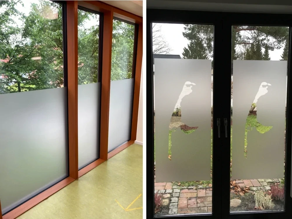 Glasdekorfolien sind einsetzbar als Sichtschutz, Durchlaufschutz oder dem Schaffen einer Intimsphäre in verglasten Räumen. Sie bieten vielfältige Anwendungsmöglichkeiten für die Dekoration von Glasflächen in Innenräumen sowie Schaufenstern von Geschäften, Büros oder Restaurants.